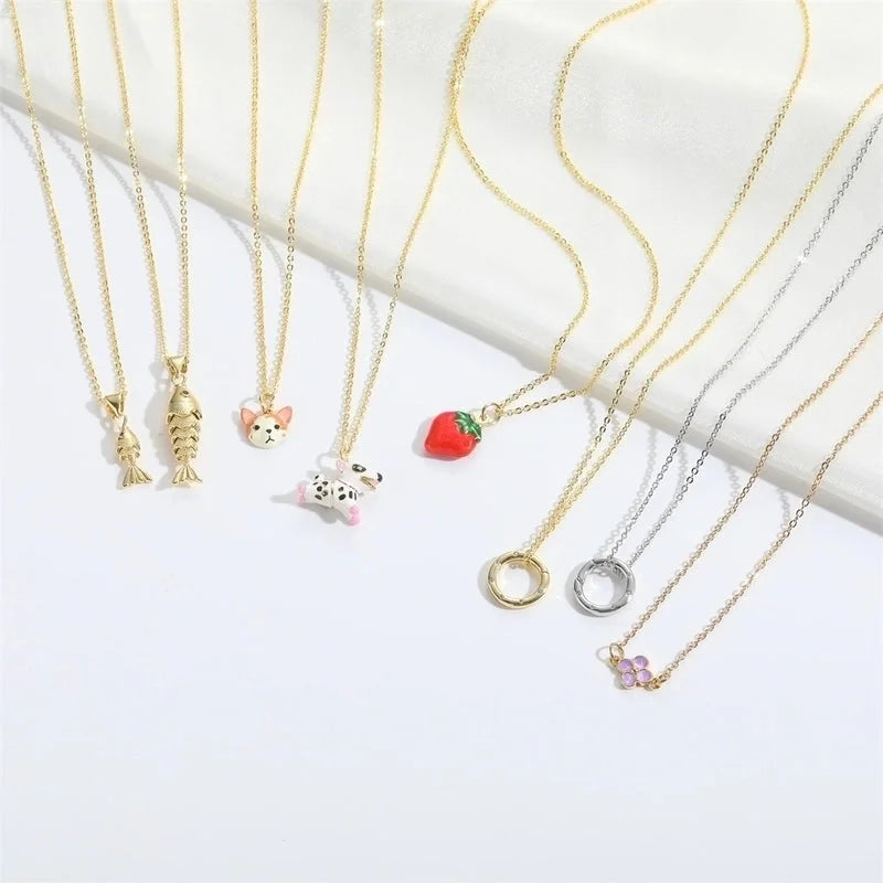 Copper 14K Gold Plated Inlay Dog Zircon Pendant Necklace