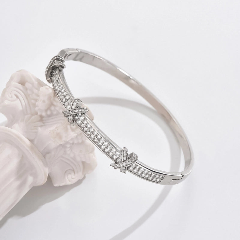 Copper 18K Gold Plated IG Style Minimalist Inlay Letter Zircon Bangle