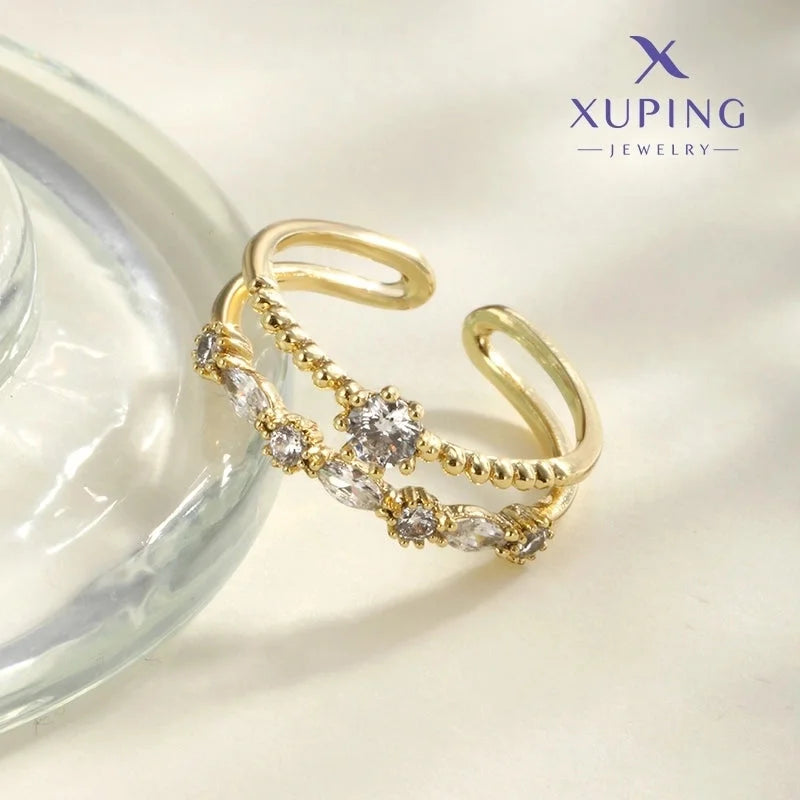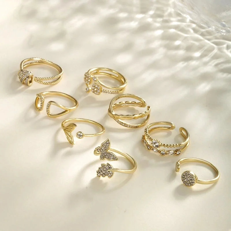 Copper 18K Gold Plated Inlay Geometric Butterfly Fish Tail Artificial Gemstones Open Rings