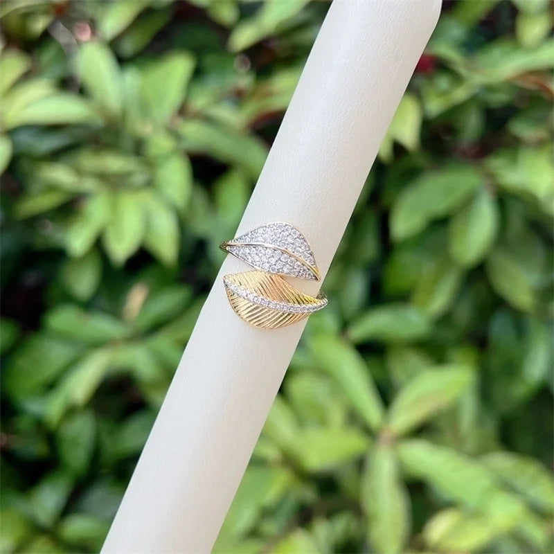 Copper 18K Gold Plated Inlay Heart Shape Zircon Open Rings