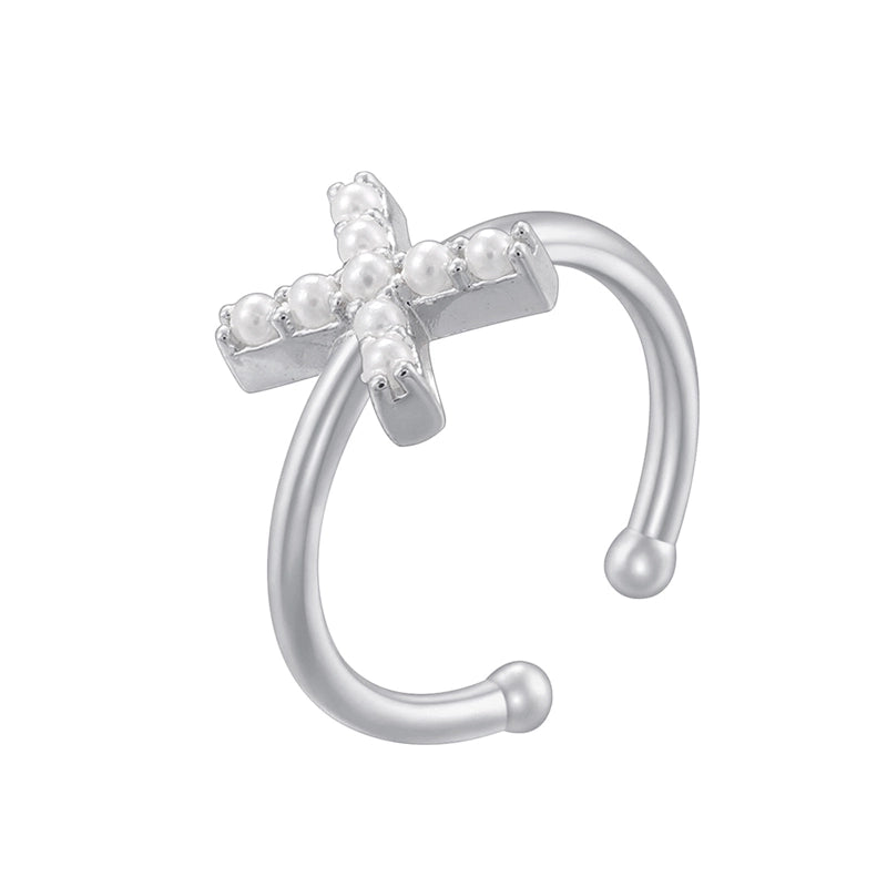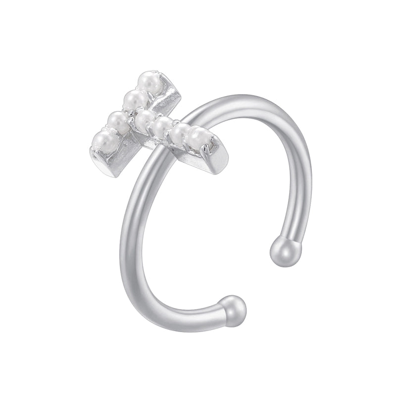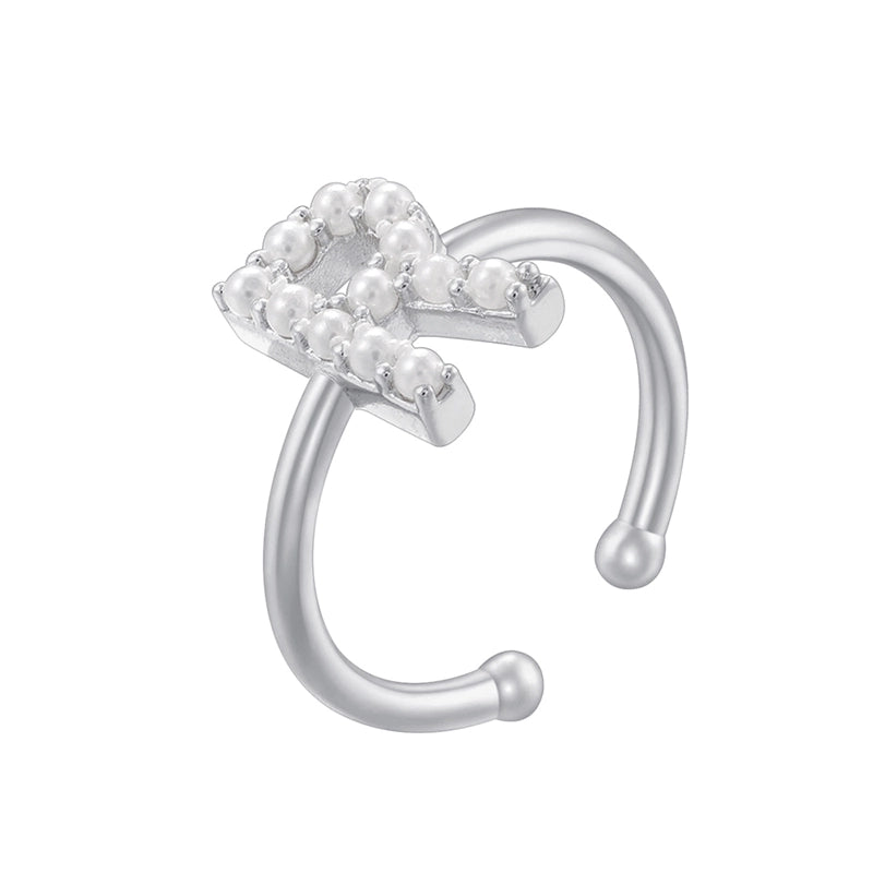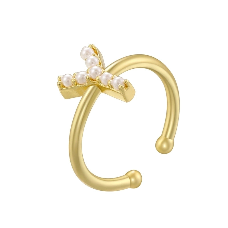 Copper 18K Gold Plated Plating Inlay Letter Artificial Pearls Open Rings