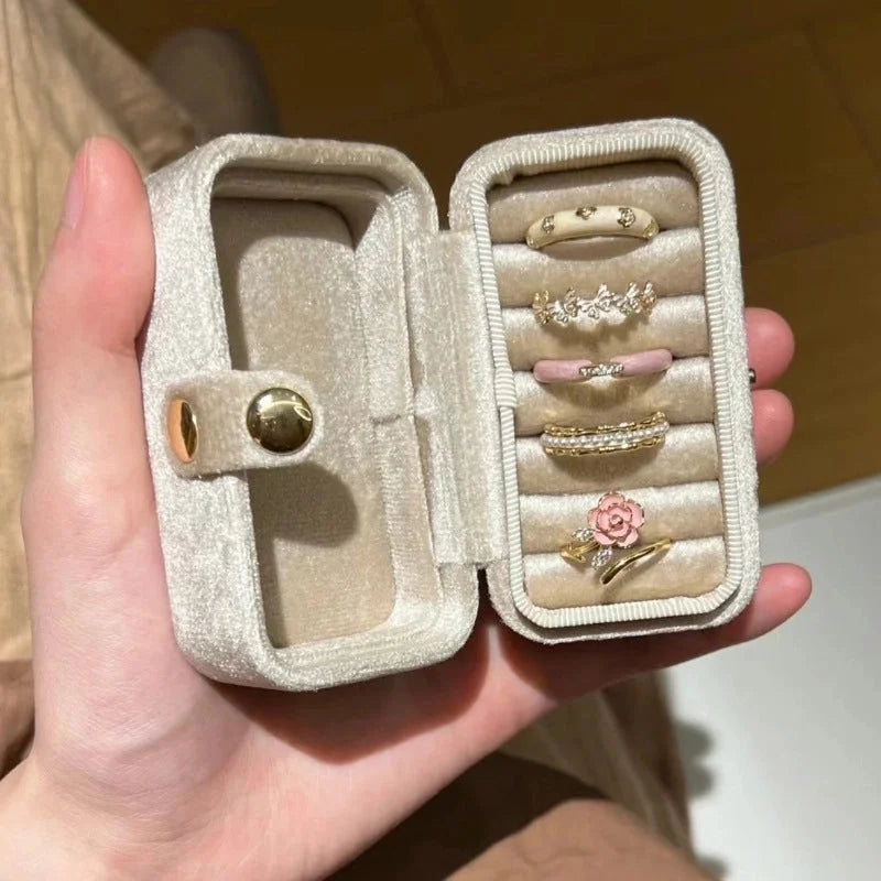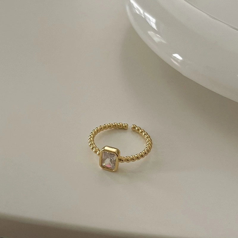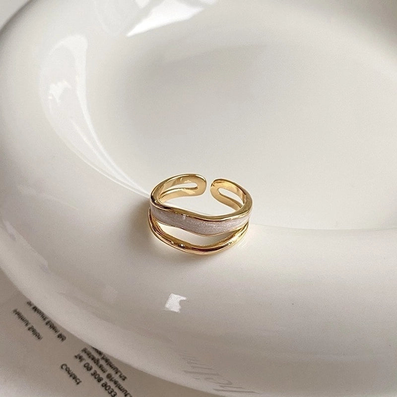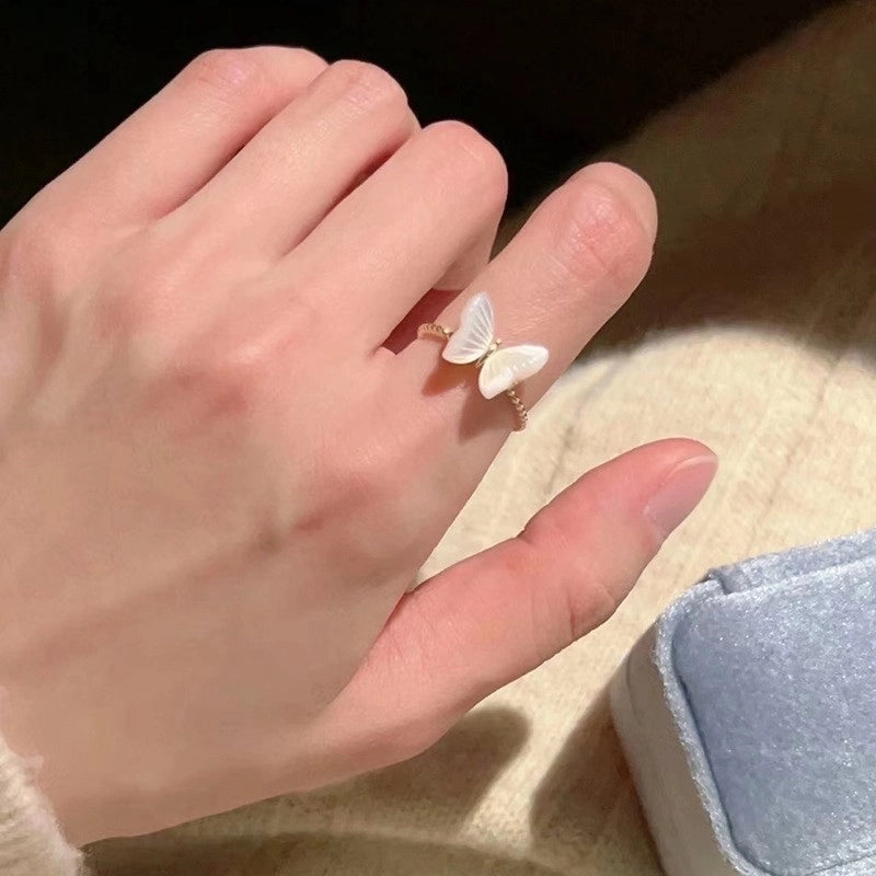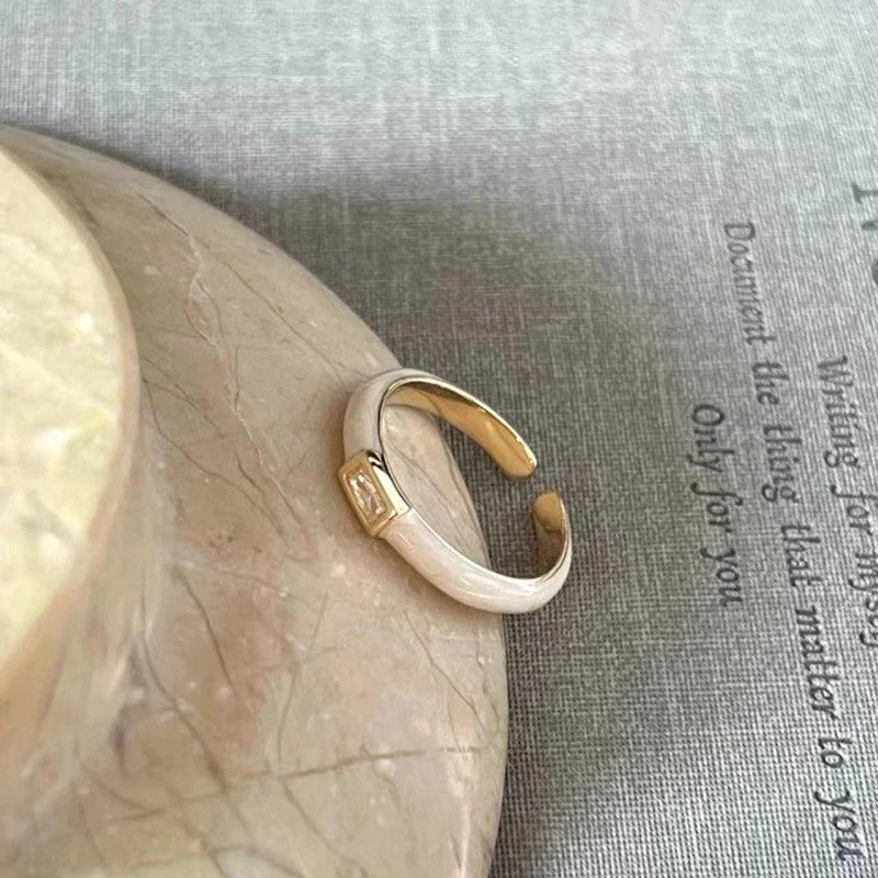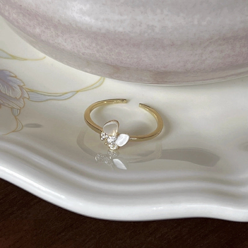 Copper Beaded Enamel Inlay Geometric Flower Butterfly Zircon Open Rings