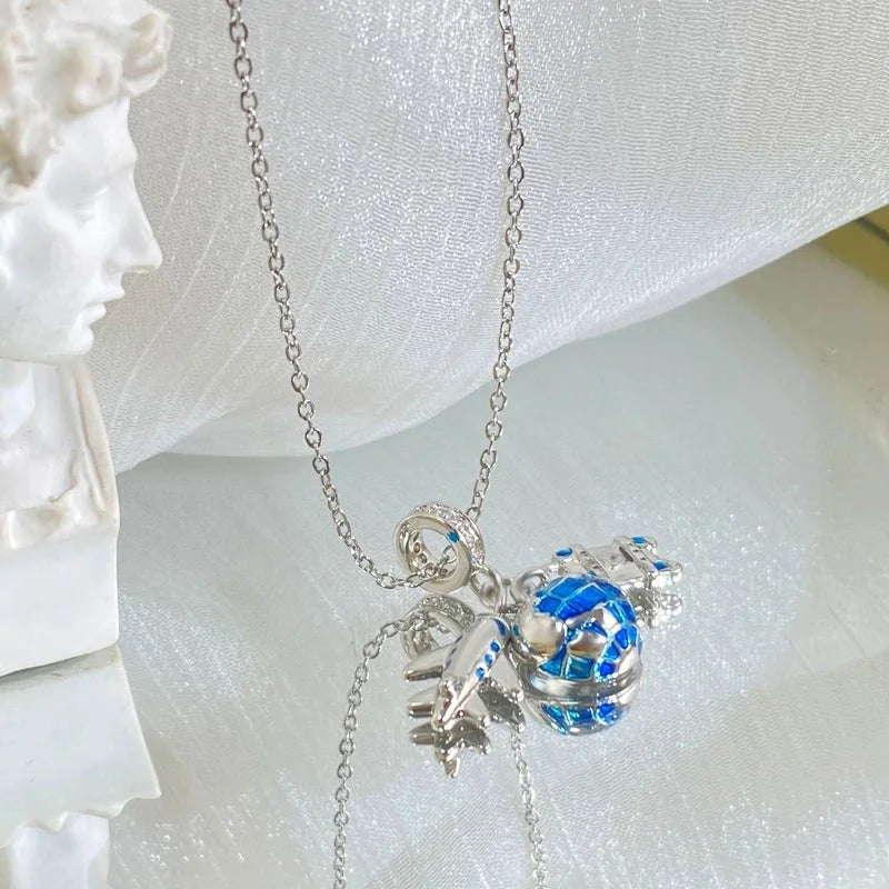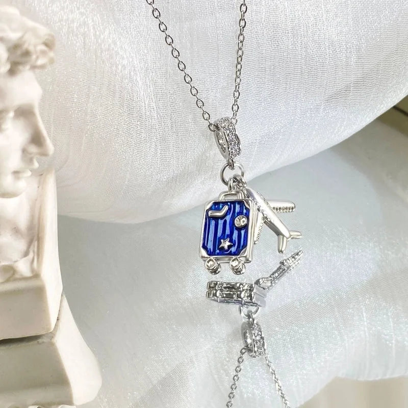 Copper Cable Chain Plating Four Leaf Clover Eiffel Tower Airplane Pendant Necklace