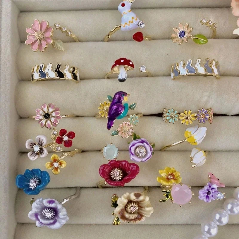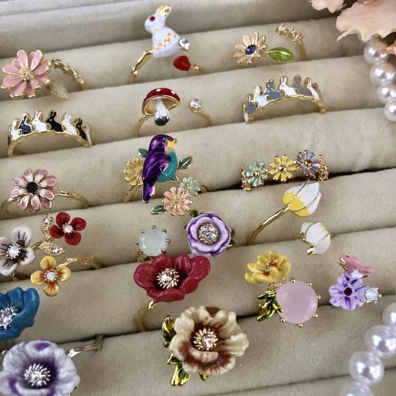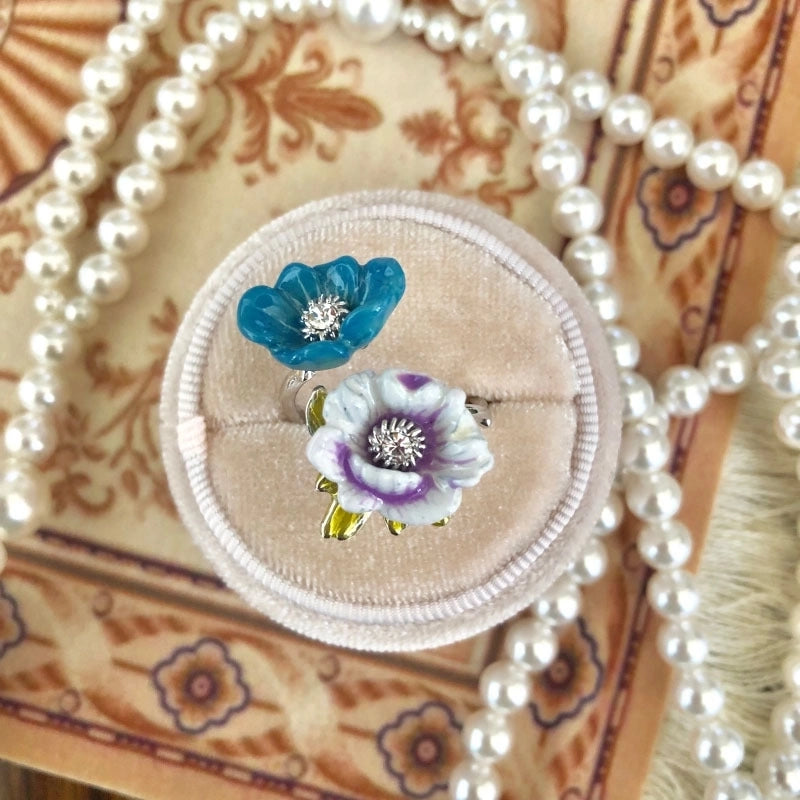 Copper Inlay Flower Pearl Rings
