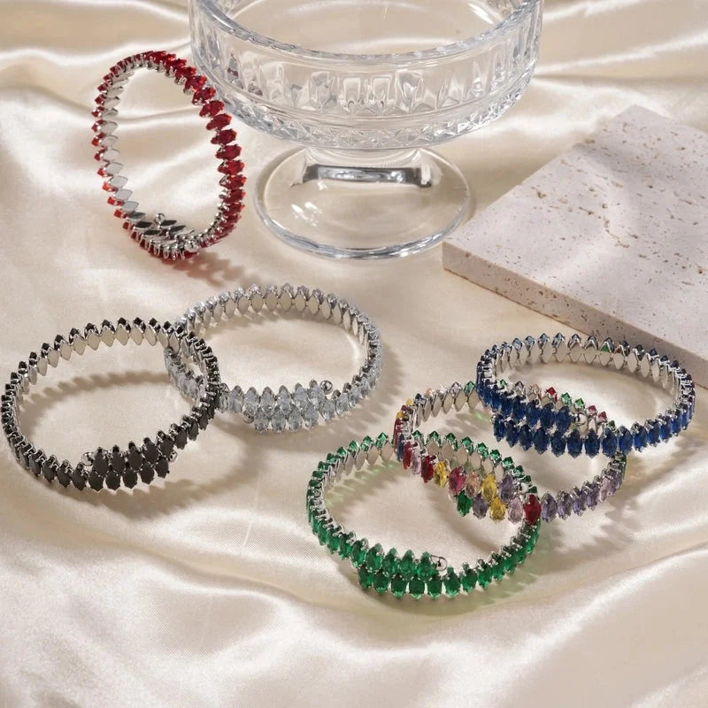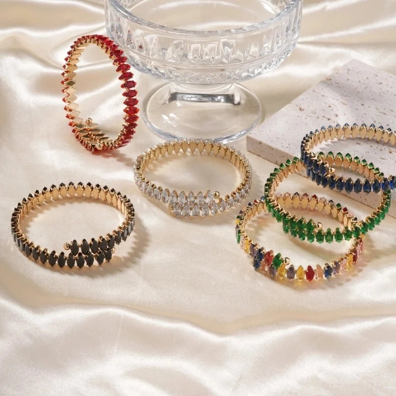 Copper K Gold Plated Inlay Geometric Water Droplets Zircon Bangle