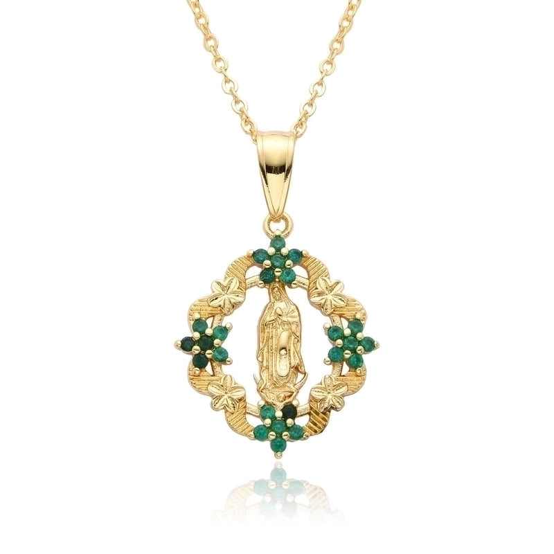 Copper Retro Virgin Mary Flower Plating Inlay Zircon Pendant Necklace
