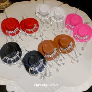 Cowboy Hat Water Drop Diamond Tassel Ear Hook Fashion Personality Creative Long Eardrop Hot Girl Sweet Cool Wind Earrings