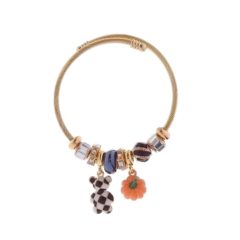 Cute Animal Pumpkin Heart Shape 304 Stainless Steel Alloy Rhinestones Bangle In Bulk Stainless Steel Bracelets Halloween