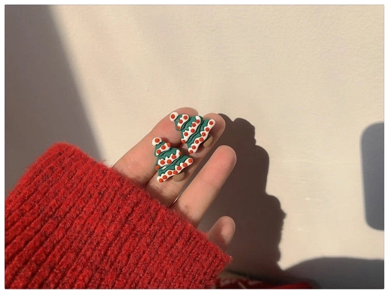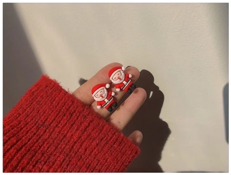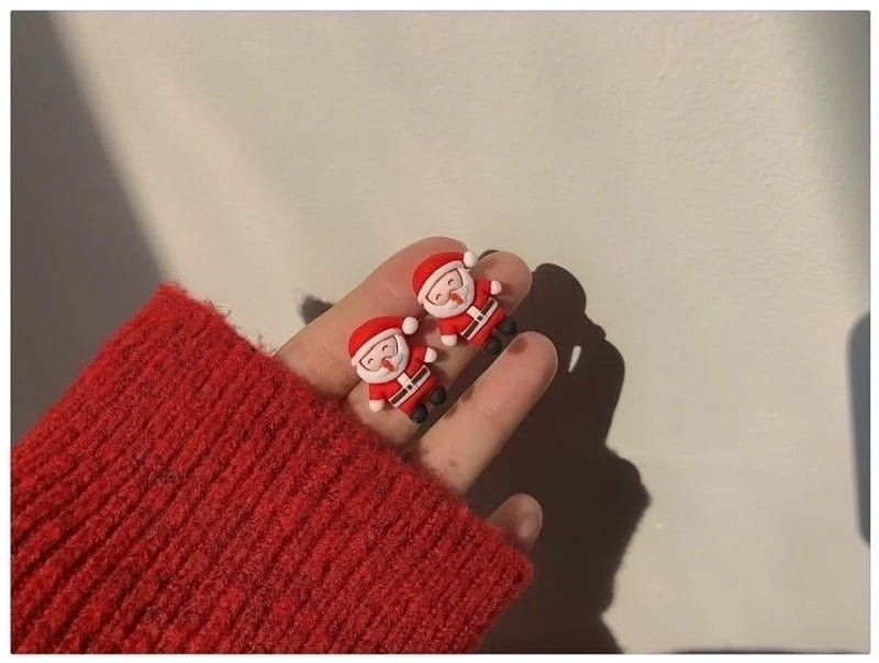 Cute Christmas Tree Santa Claus Elk Resin Women's Ear Clips Ear Studs 1 Pair