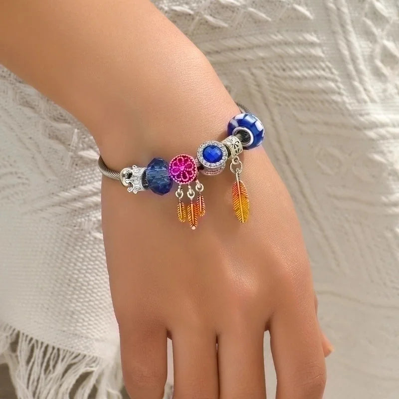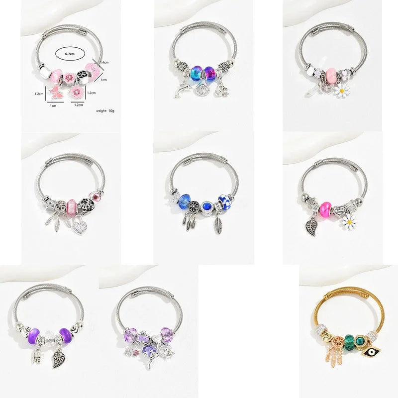 Cute Fashion Sweet Devil\'S Eye Feather Flower 201 Stainless Steel 18K Gold Plated Zircon Bangle In Bulk