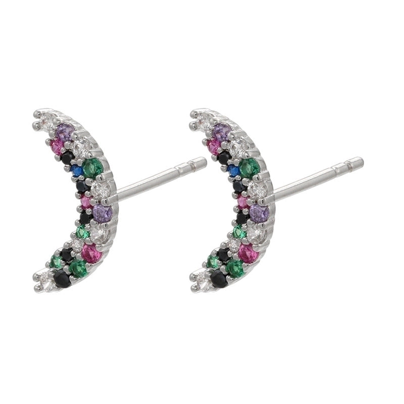Cute Geometric Moon Flower Copper Artificial Gemstones Copper Earrings