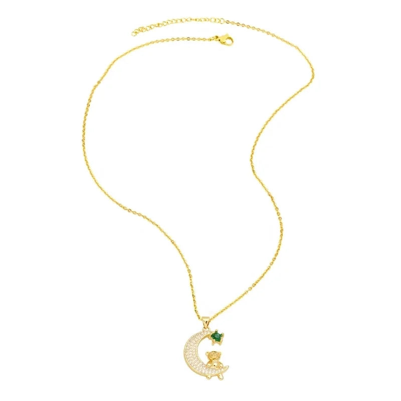 Cute Minimalist Little Bear Copper 18k Gold Plated Zircon Pendant Necklace In Bulk