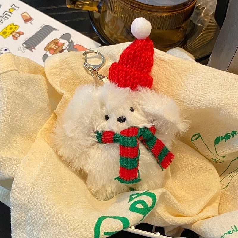 Cute Rabbit Plush Metal Christmas Women's Bag Pendant Keychain