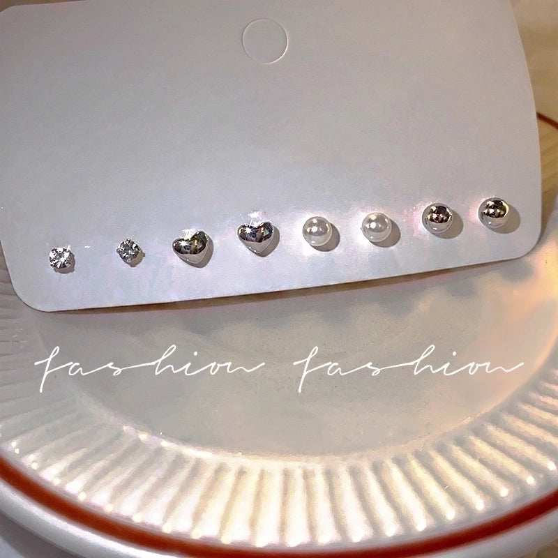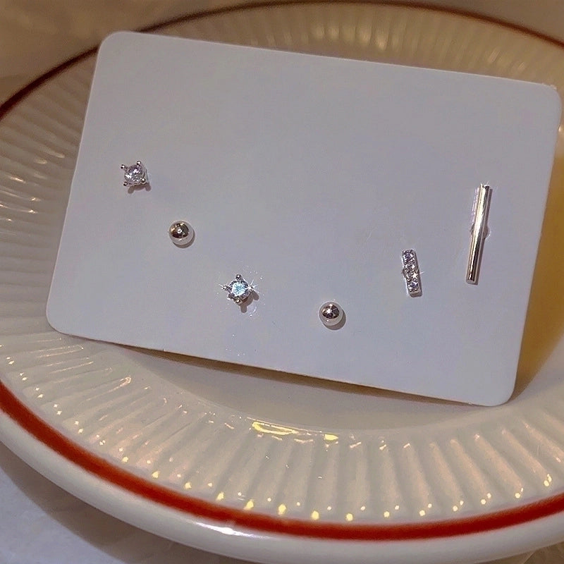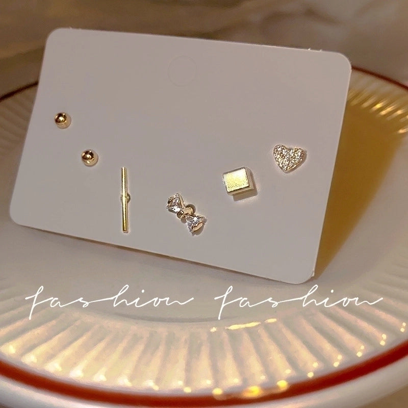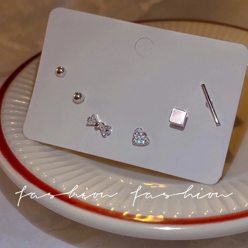 Cute Star Heart Shape Bow Knot Copper Plating Inlay Zircon Hoop Earrings Ear Studs 1 Set