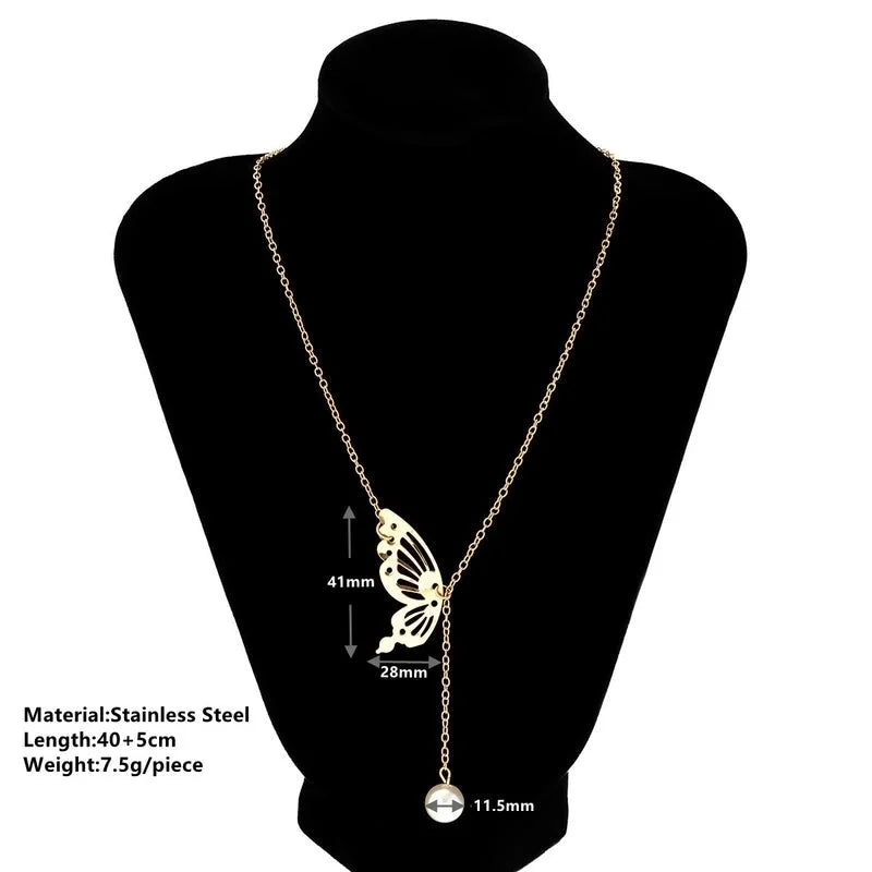 Cute Sweet Butterfly Titanium Steel 18K Gold Plated Plating Pendant Necklace