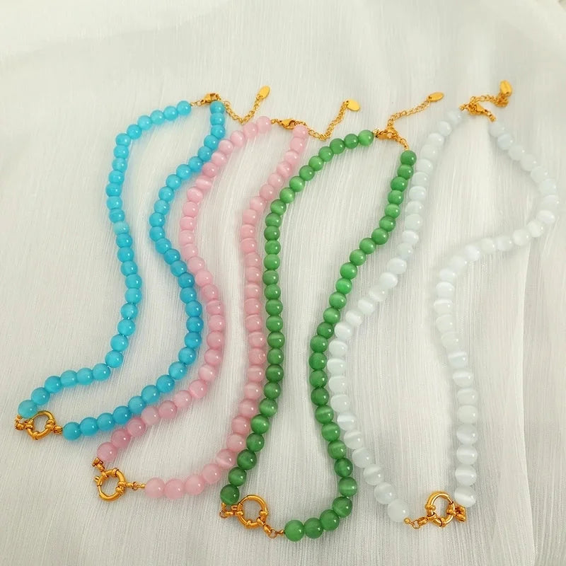 Elegant Classic Style Streetwear Round 18K Gold Plated 304 Stainless Steel Opal Necklace