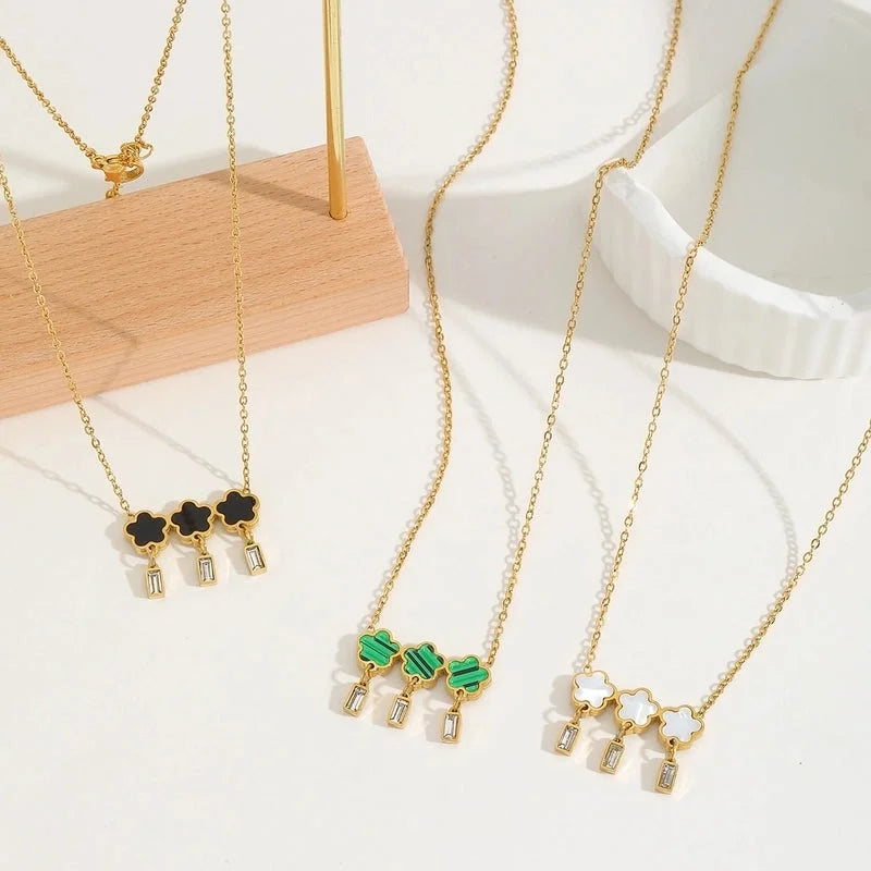 Elegant Cute Minimalist Flower 304 Stainless Steel Acrylic Zircon 18K Gold Plated Inlay Pendant Necklace