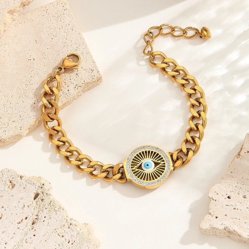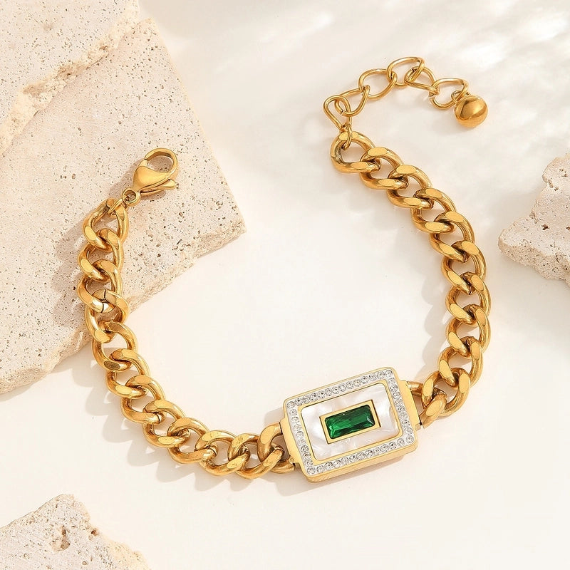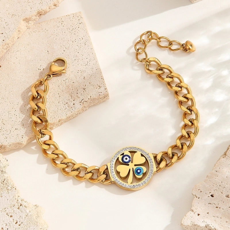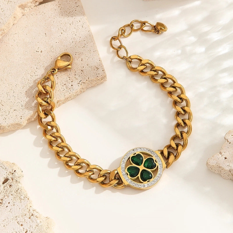 3 Pieces Elegant Four Leaf Clover Life Tree Titanium Steel Cuban Link Chain Curb Chain Bracelets In Bulk