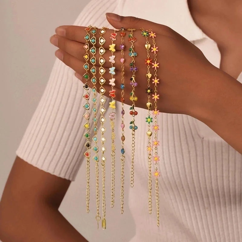 Elegant Lady Streetwear Cherry Heart Shape Flower 201 Stainless Steel Gold Plated Bracelets In Bulk
