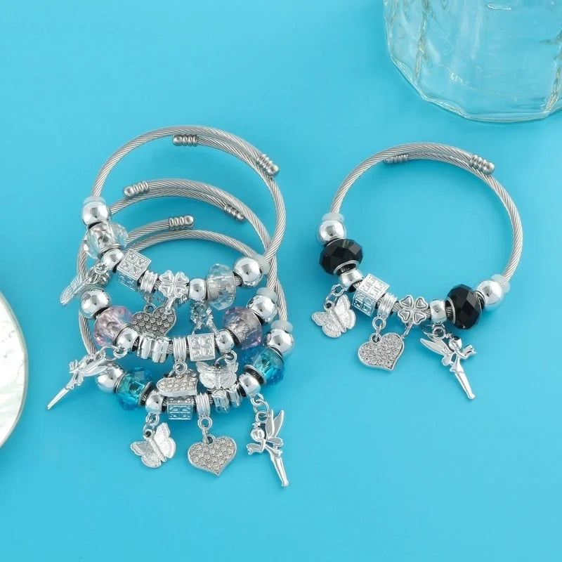 Elegant Luxurious Heart Shape 304 Stainless Steel White Gold Plated Crystal Zircon Bangle In Bulk