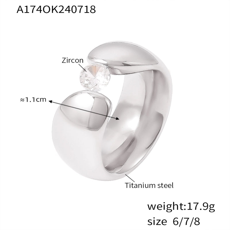Elegant Luxurious Minimalist Solid Color Titanium Steel Zircon 18K Gold Plated Plating Inlay Rings