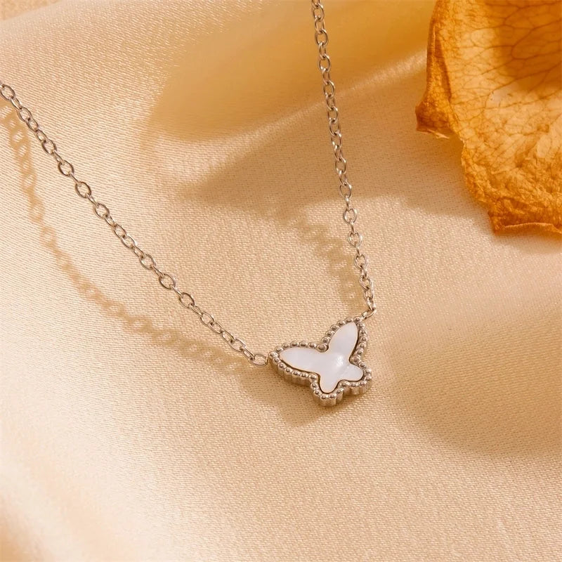 Elegant Minimalist Butterfly Titanium Steel Acrylic 18K Gold Plated Inlay Bracelets Earrings Necklace