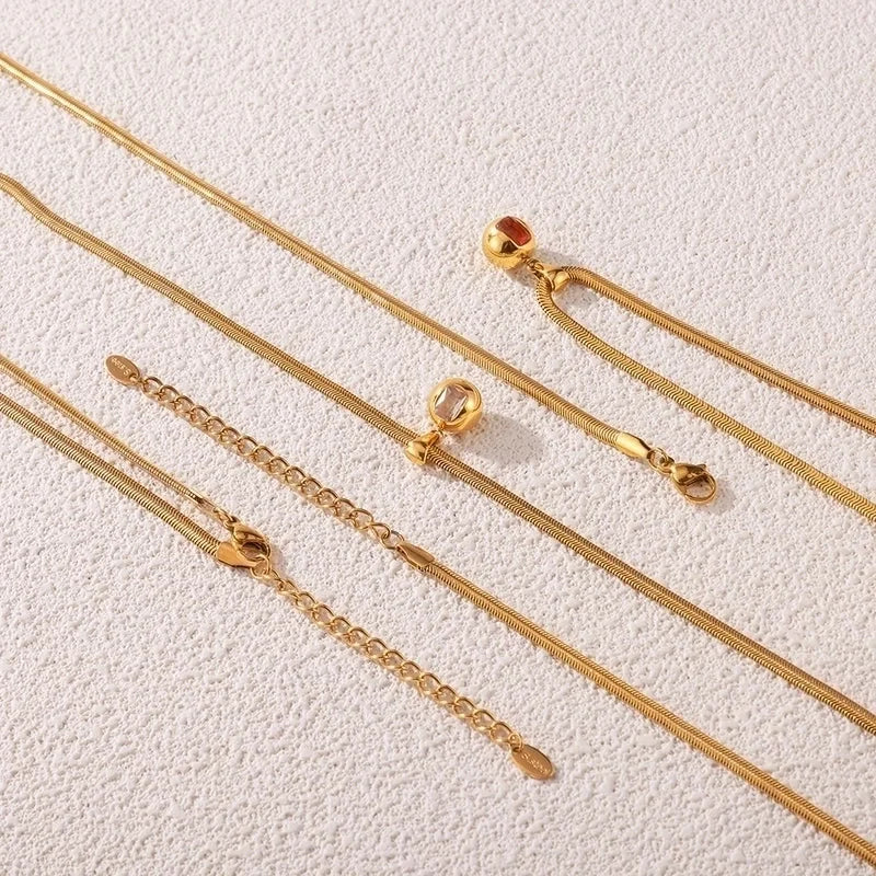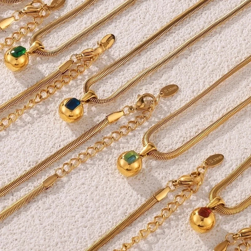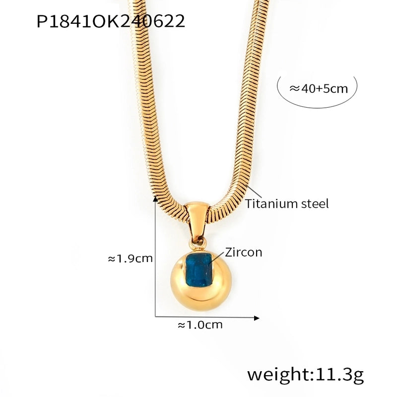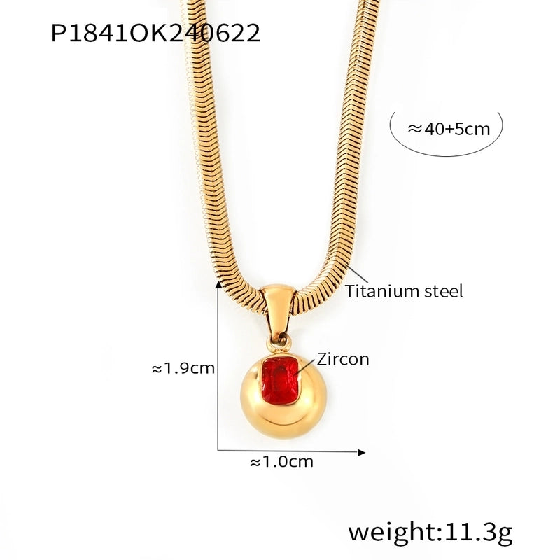 Elegant Minimalist Round 304 Stainless Steel Zircon 18K Gold Plated Inlay Pendant Necklace