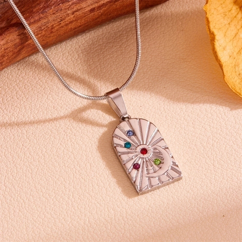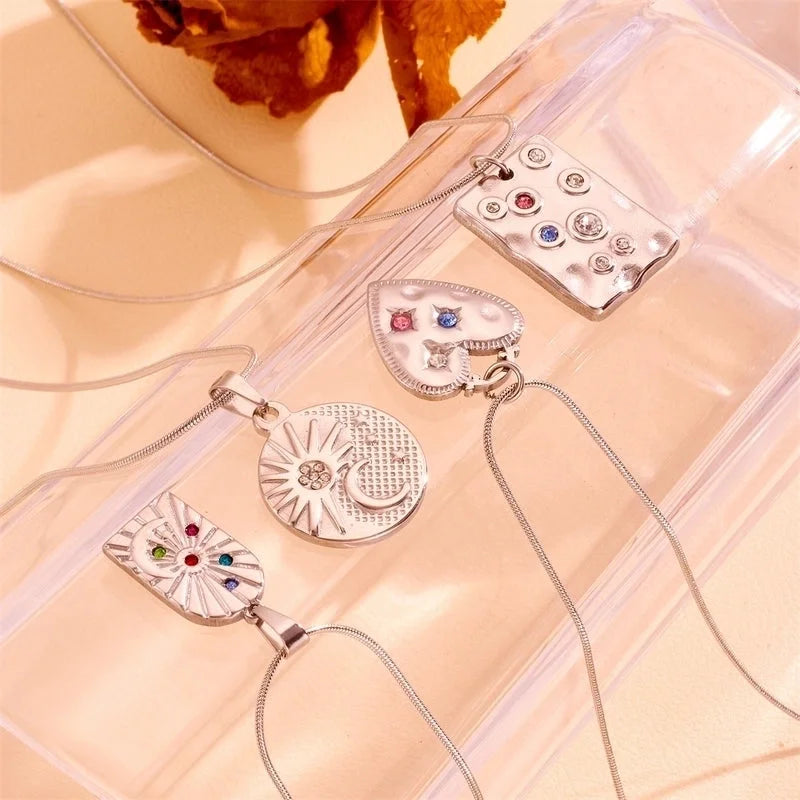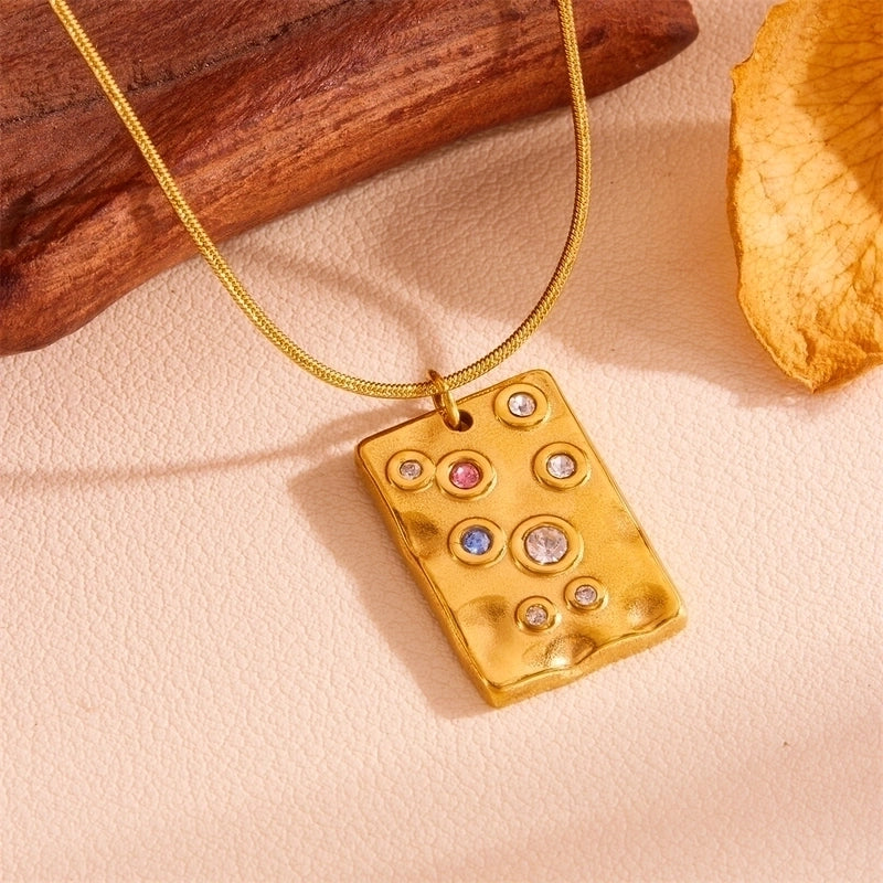 Elegant Minimalist Streetwear Heart Shape Rectangle Titanium Steel 18K Gold Plated Pendant Necklace