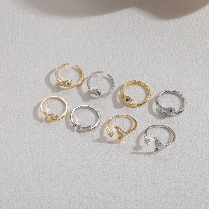 Elegant Snake Lightning Fish Tail Copper Plating Inlay Zircon 14k Gold Plated Open Ring