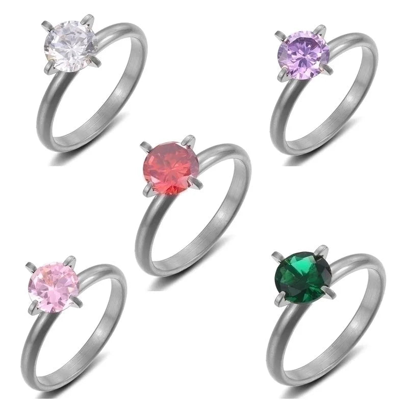 Elegant Solid Color Titanium Steel Inlay Zircon Rings
