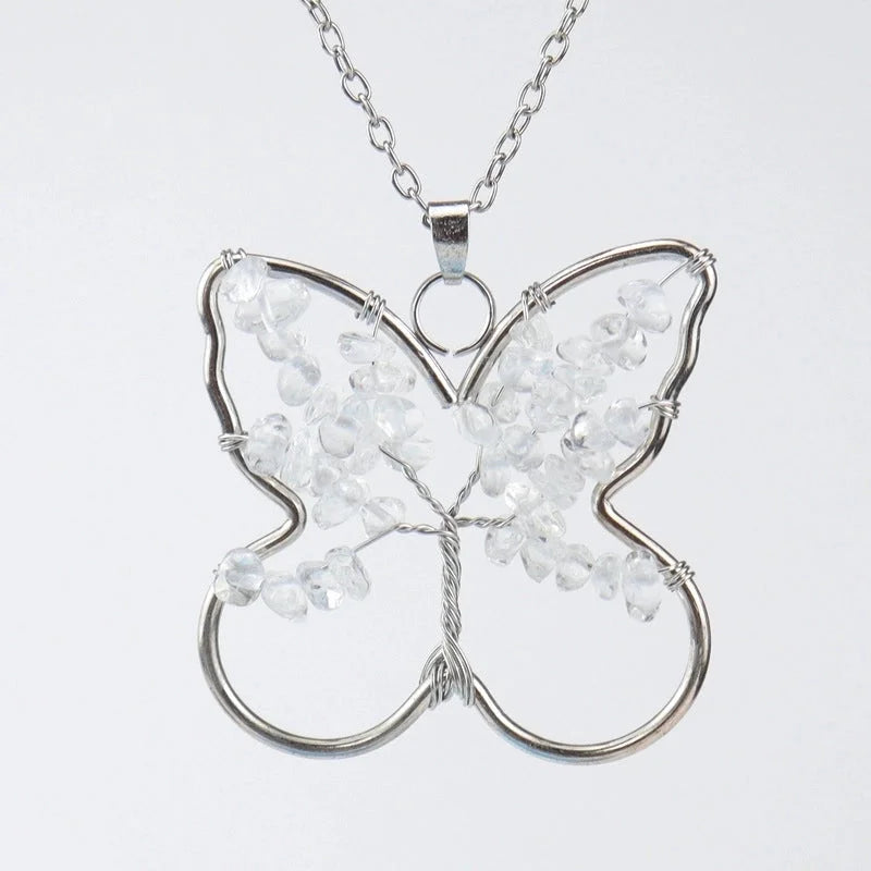 Ethnic Style Butterfly Natural Stone Pendant Necklace 1 Piece