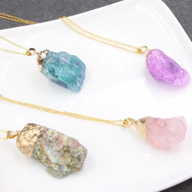 Ethnic Style Geometric Copper Inlay Natural Stone Pendant Necklace