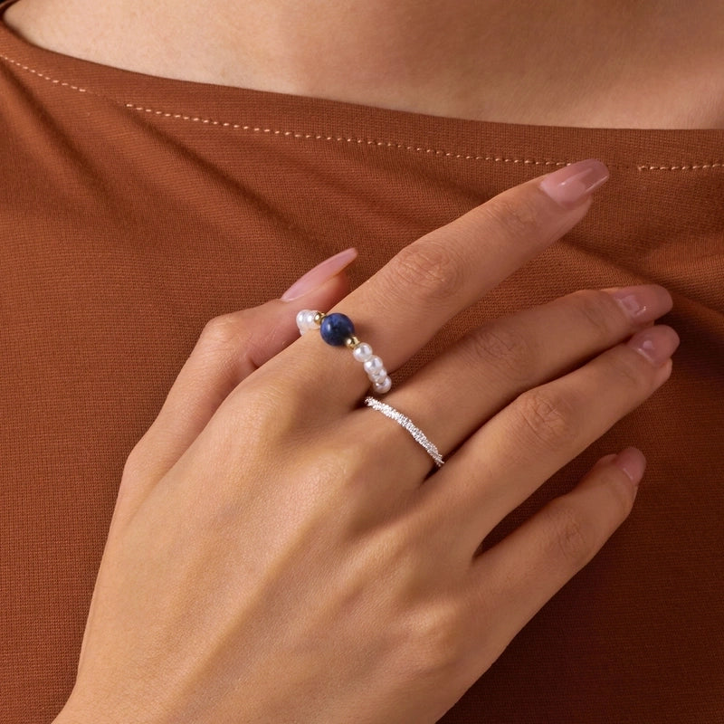 Fairy Style Sweet Shiny Round Imitation Pearl Synthetic Resin Beaded Rings