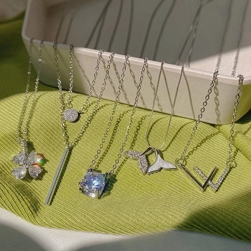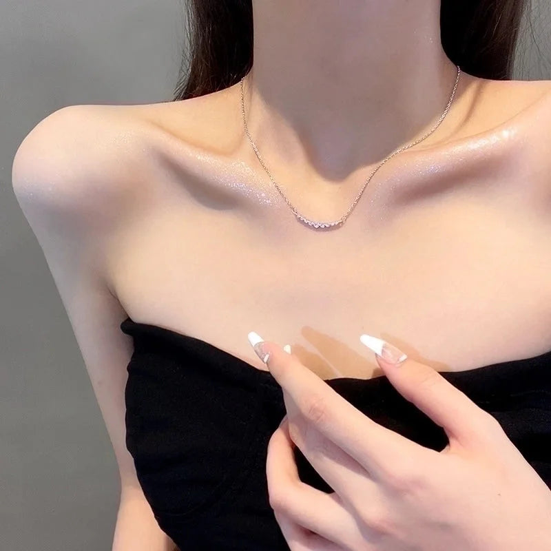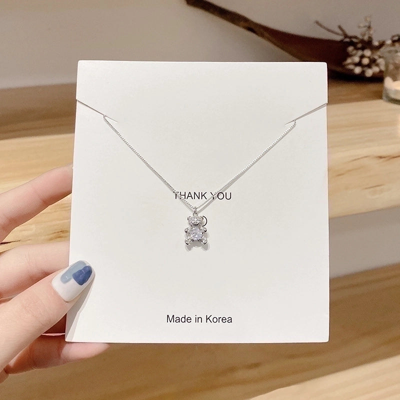 Fashion Bow Knot Titanium Steel Inlay Zircon Pendant Necklace 1 Piece
