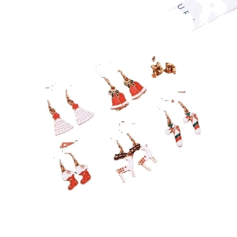 Fashion Christmas Tree Snowflake Elk Silver Plated Enamel Women's Earrings 1 Pair