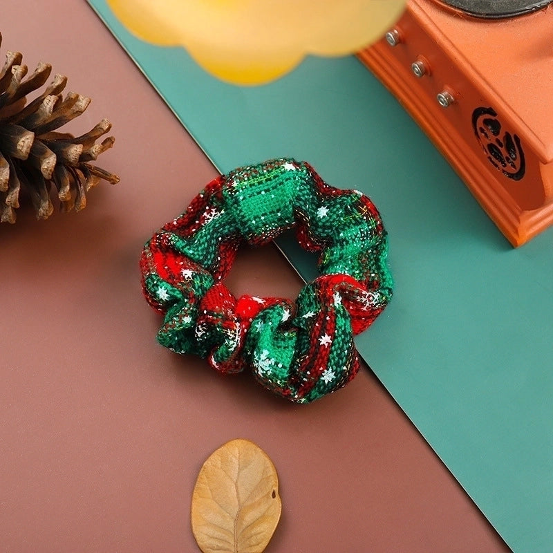 Fashion Color Block Plaid Snowflake Cloth Hair Tie 1 Piece