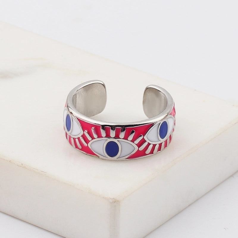 Fashion Devil\'s Eye Copper Open Ring Inlay Resin Copper Rings