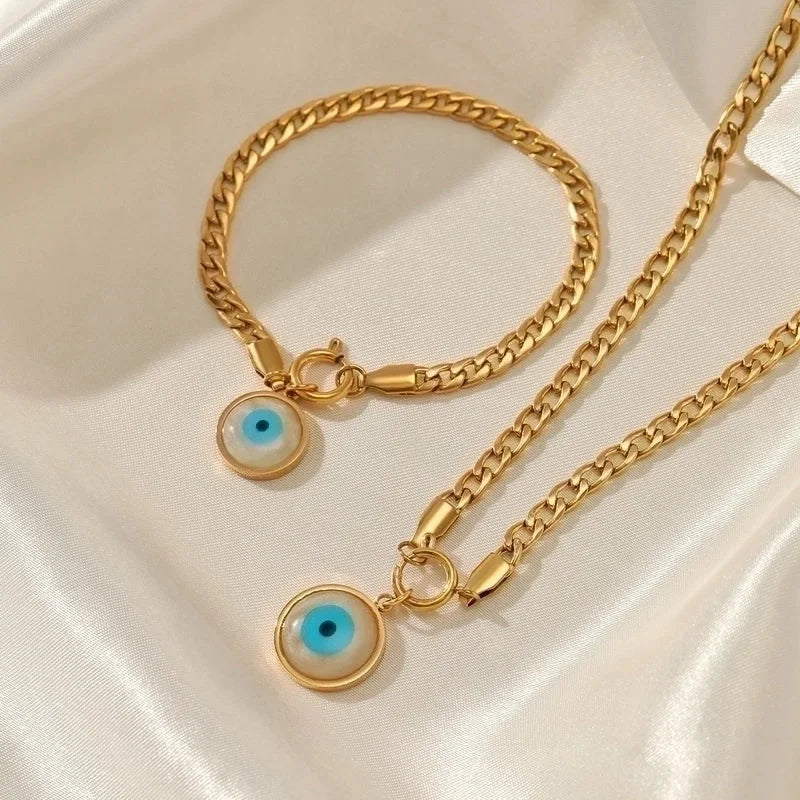 Fashion Devil\'S Eye 304 Stainless Steel Gold Plated Stainless Steel Jewelry Sets
