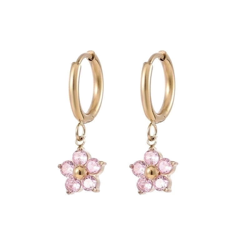 1 Pair Fashion Flower Plating Inlay 304 Stainless Steel Zircon Gold Plated Drop Earrings