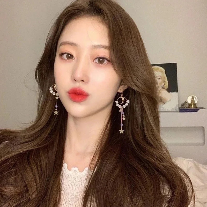 Fashion Geometric Star Flower Imitation Pearl Alloy Tassel Women\'s Drop Earrings 1 Pair