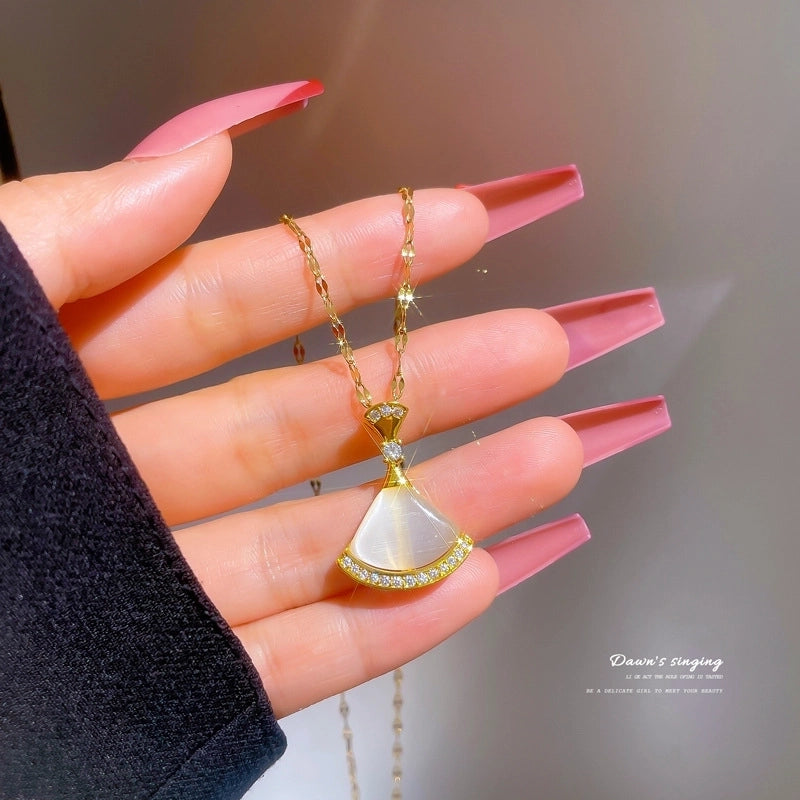 Fashion Geometric Titanium Steel Copper Plating Artificial Diamond Necklace