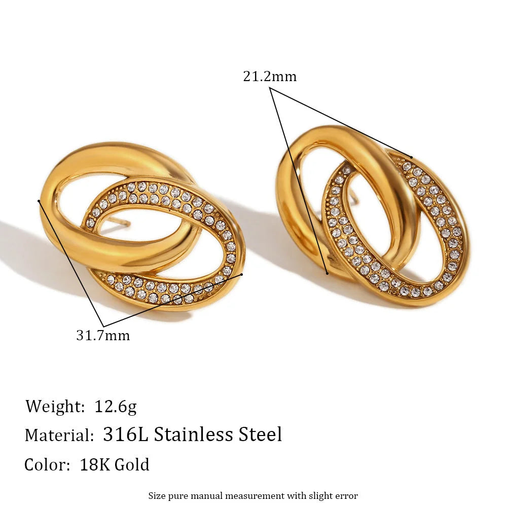 Fashion Heart Double Circle Droplet Geometric Stainless Steel 18K Gold Plated Earrings