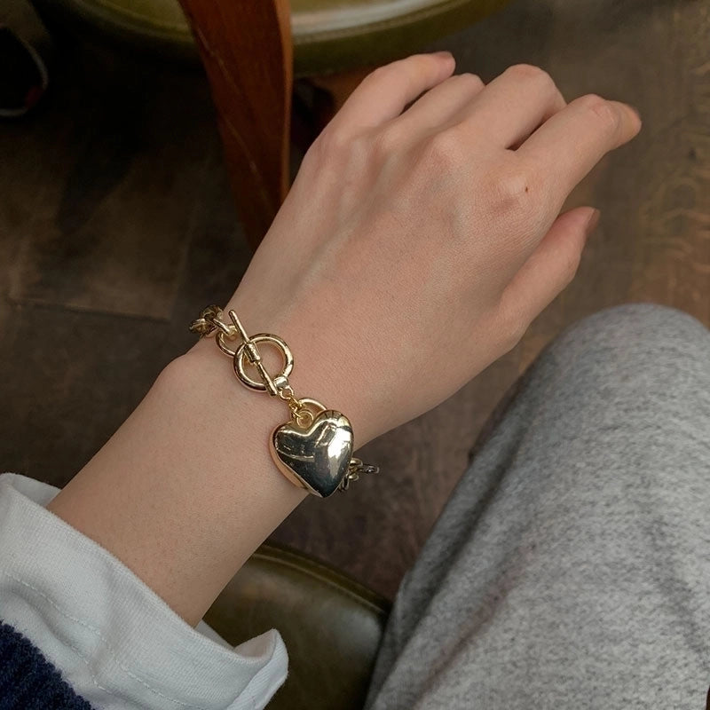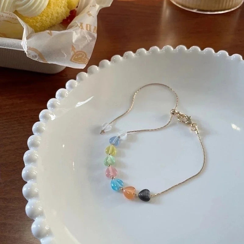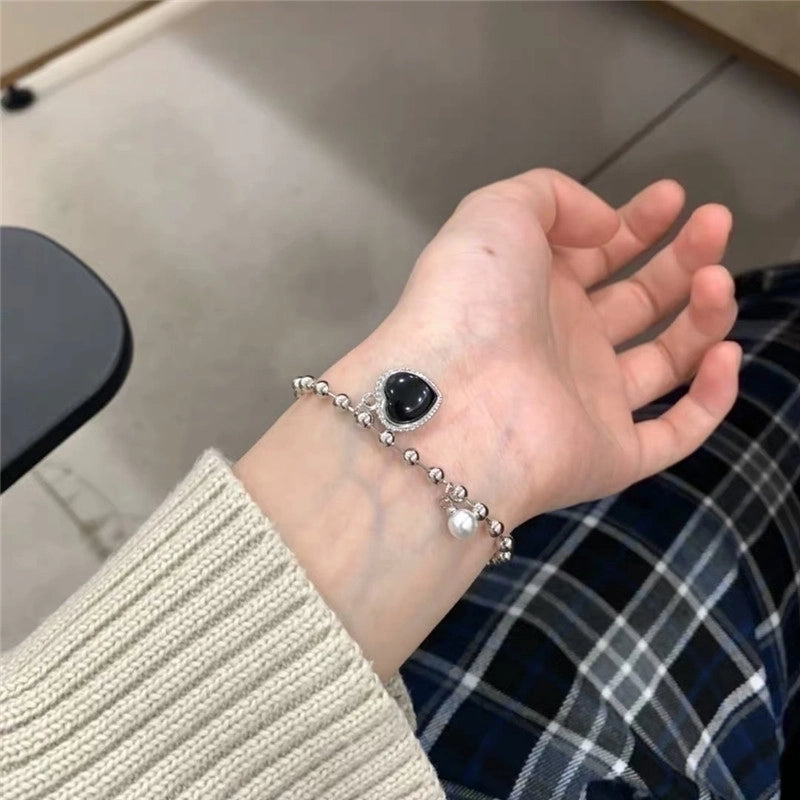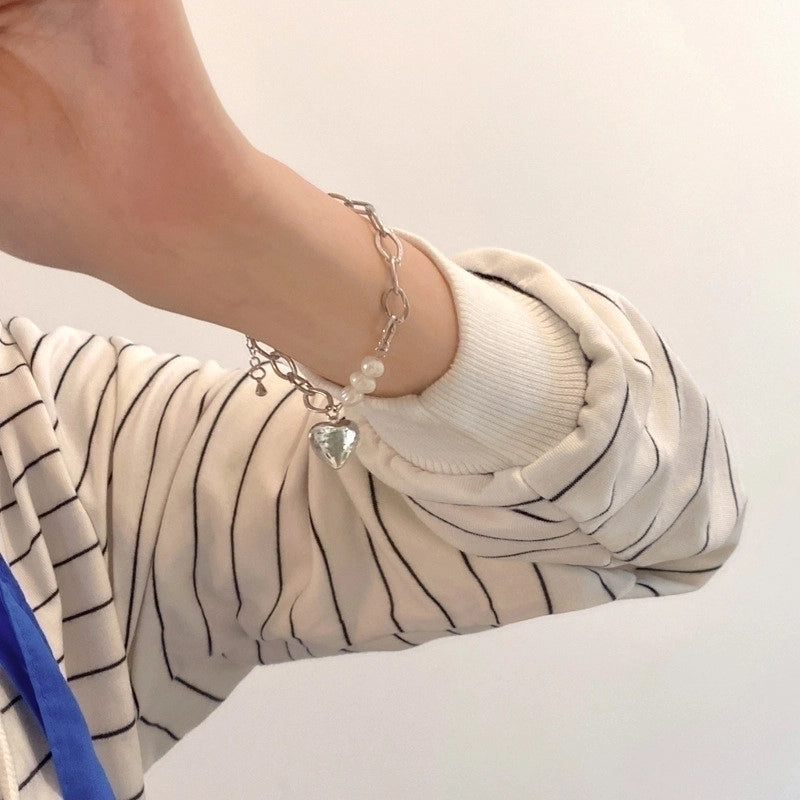 Fashion Heart Shape Alloy Titanium Steel Plating Rhinestones Artificial Pearls Women\'S Bracelets
