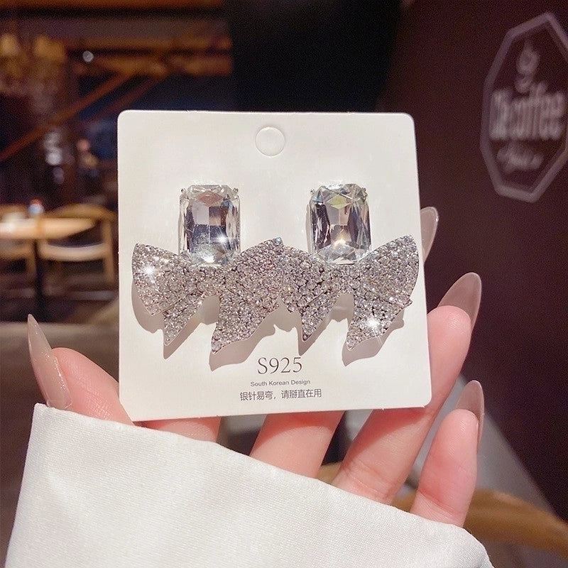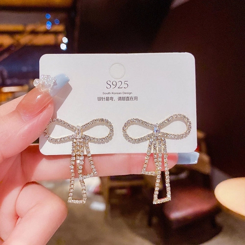 Fashion Heart Shape Bow Knot Copper Inlay Zircon Drop Earrings 1 Pair