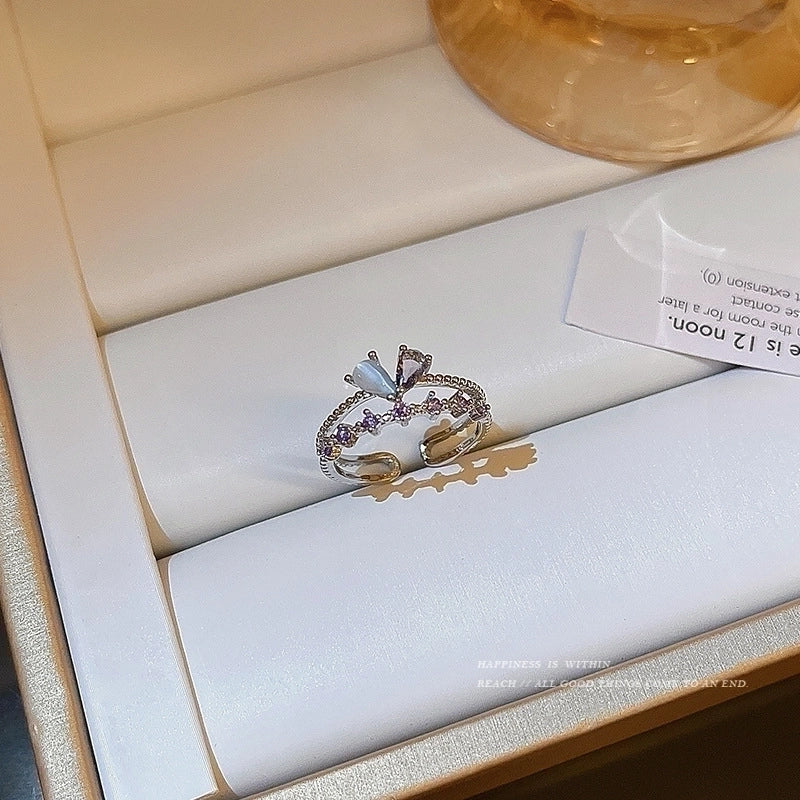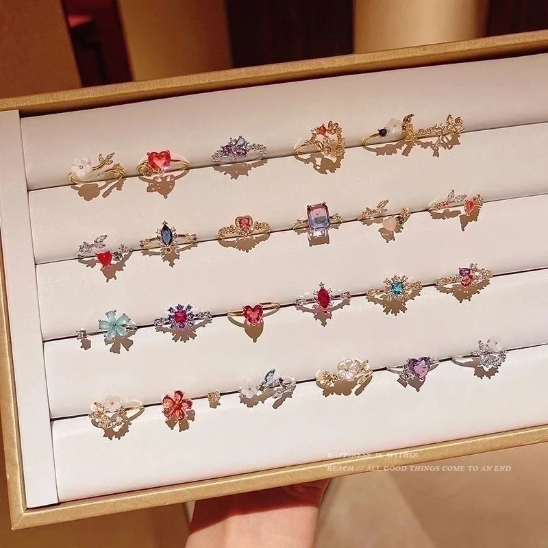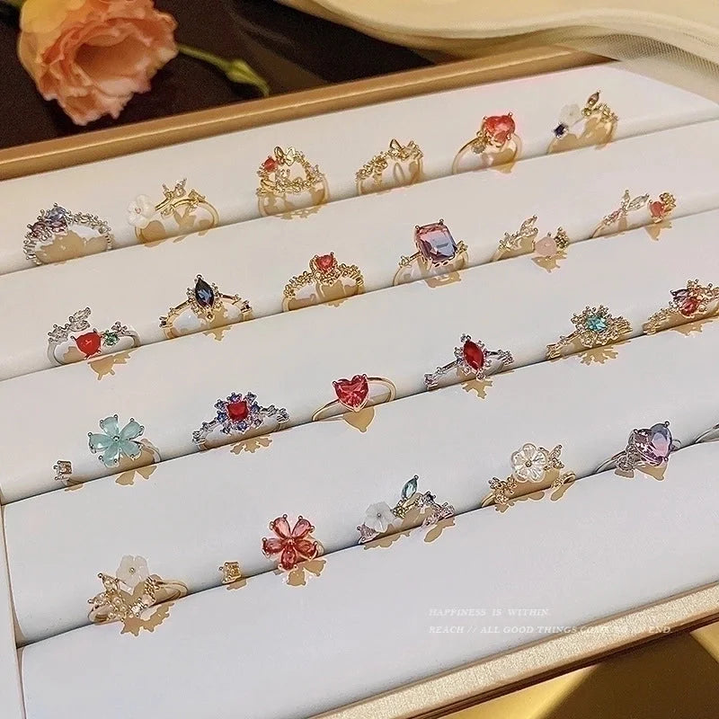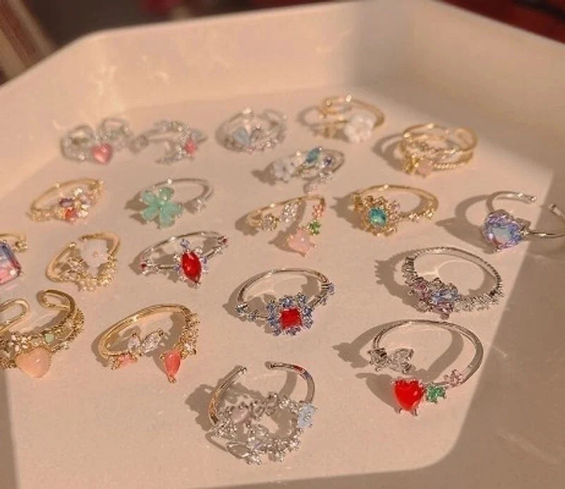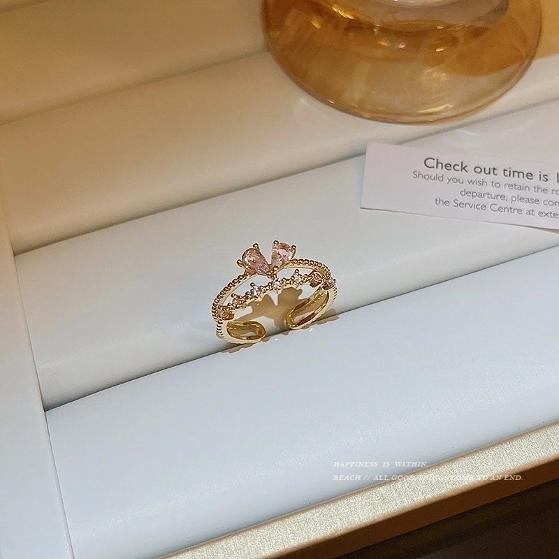 Fashion Heart Shape Copper Inlay Artificial Gemstones Open Ring 1 Piece