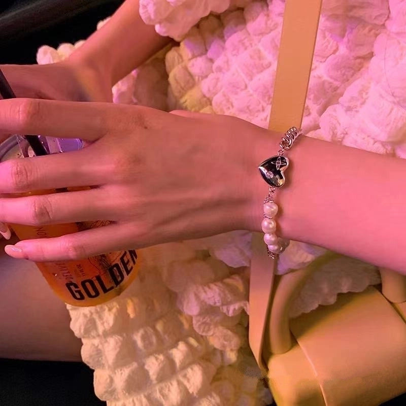 Fashion Heart Shape Flower Alloy Titanium Steel Plating Artificial Pearls Rhinestones Women'S Bracelets