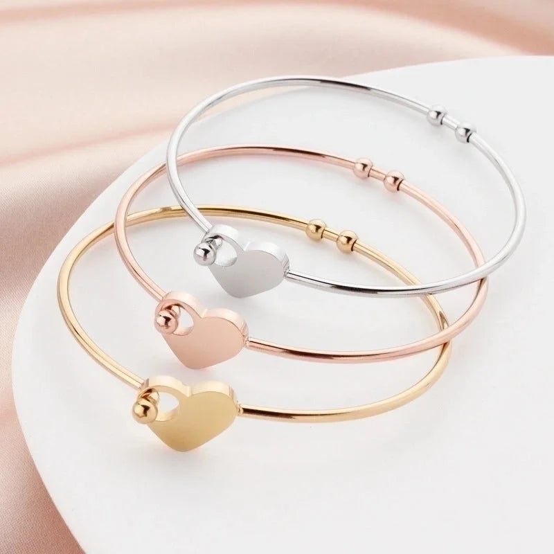 Fashion Heart Shape Titanium Steel Plating Bangle 1 Piece