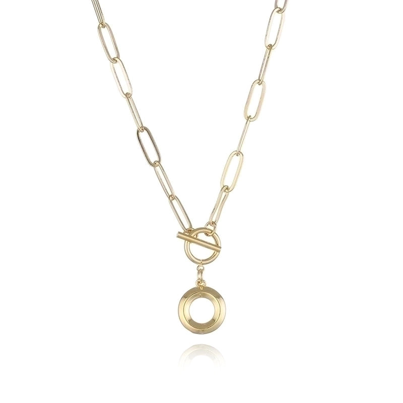 Copper Paperclip Chain Toggle Letter Pendant Necklace