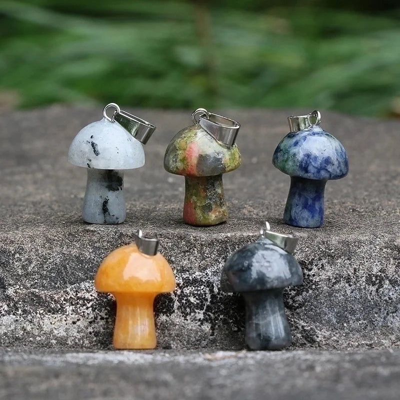 Fashion Mushroom Natural Crystal Polishing Pendant Necklace 1 Piece