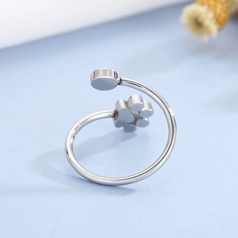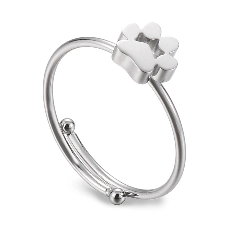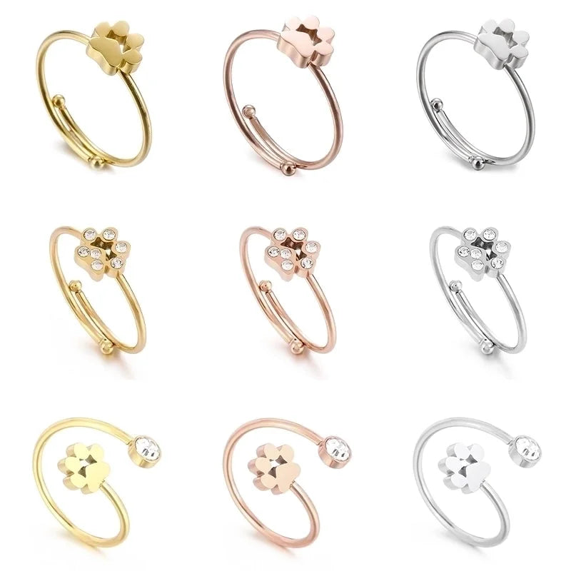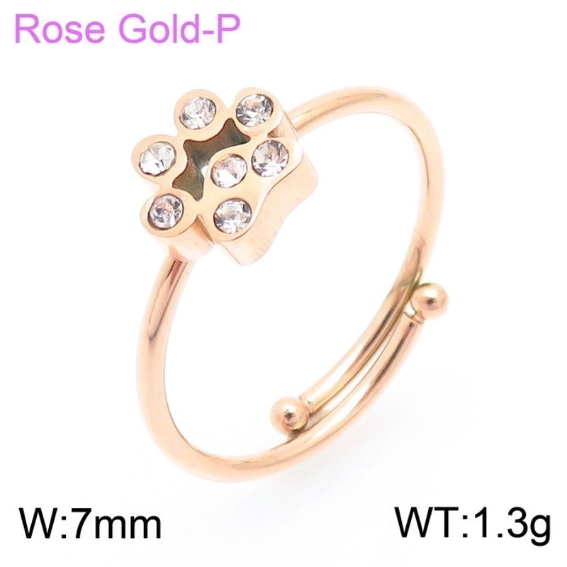 Fashion Paw Print Titanium Steel Zircon 18K Gold Plated Polishing Inlay Stainless Steel Rings